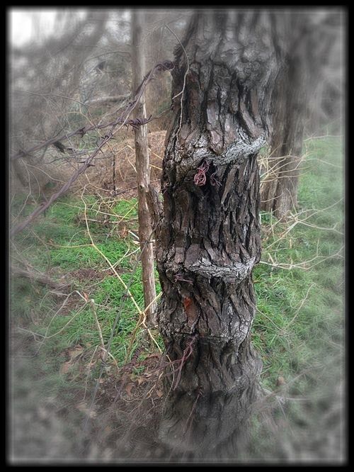 Many trees die when they are used like this, but over the years this tree accepted the wires and the nails and continued to grow. Decades later, the tree grew around the wires and finally overcame them. Yes, the scars are still there, but the tree lives on - its scars bearing testimony to its endurance and love for life.