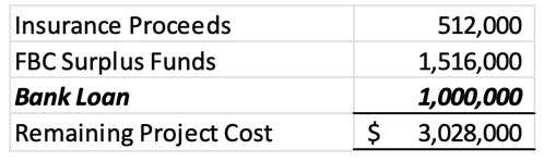 Regarding Building Next, as of March 31, approximately $3 million remains to be expended on the project. With insurance proceeds and surplus funds, we have preserved a total of $2 million, leaving $1 million to be financed, as summarized below: