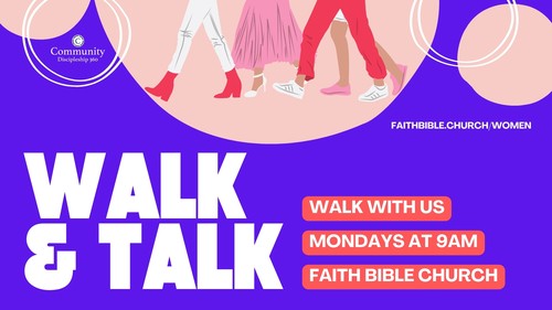 Let’s get moving! If you love to walk and want to connect with other ladies at Faith Bible Church, join us on Mondays at 9am. We will meet in the Northside foyer, rain or shine. We will walk over to the Bear Branch soccer field track if the weather cooperates. If not, we will have coffee in the café! For more details, email Ashley Fehrle at WomensConnections@faithbible.church.